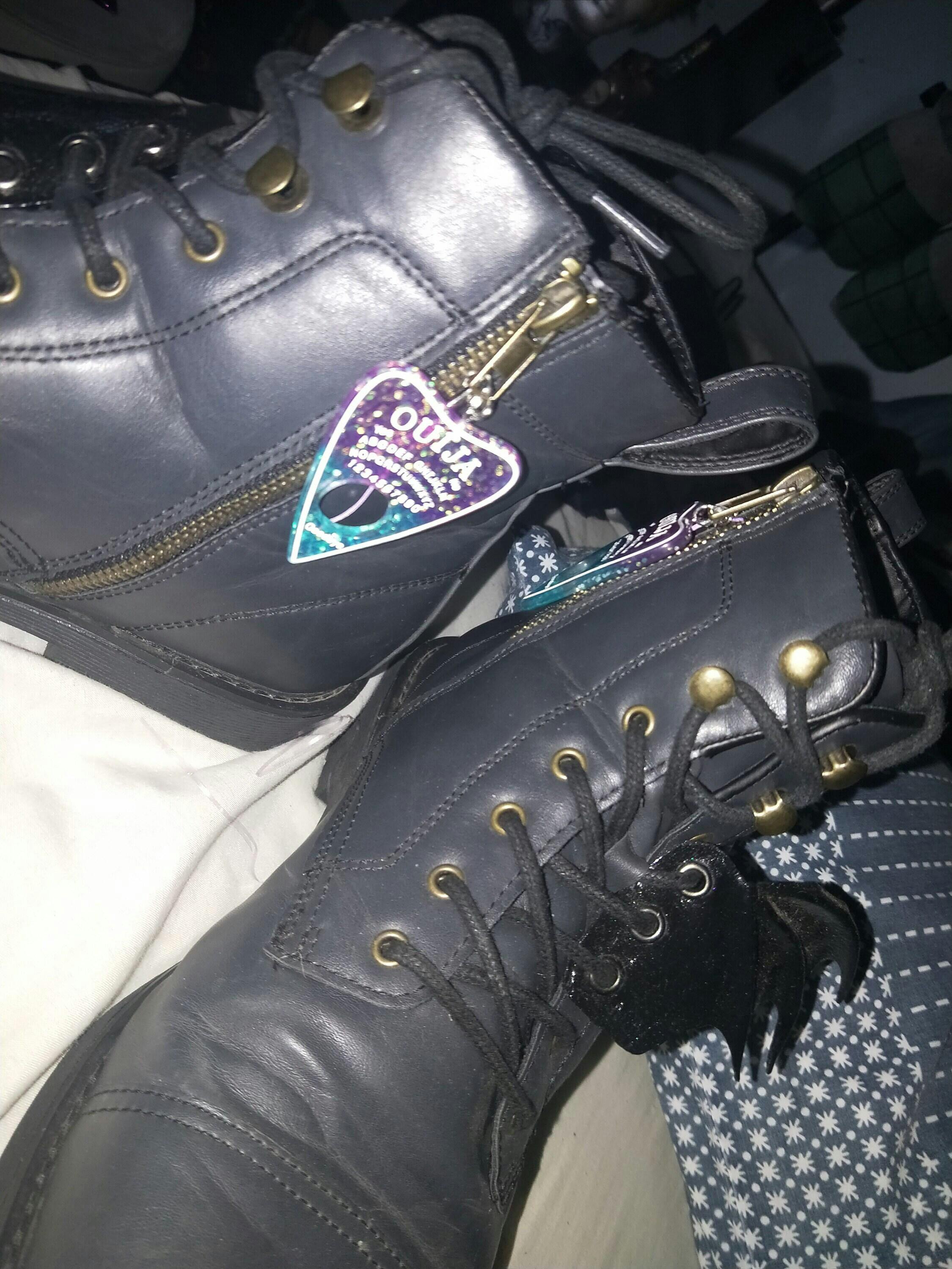 This creepy cute blue and purple ouija charm is full of iridescent glitter and features matching heart and star beads.